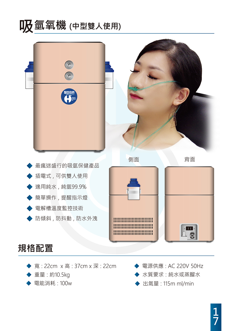 接受独特设计或logo:吸氢氧机(中型双人使用)可接受特别设计或LOGO,如有需要请与我们联络,