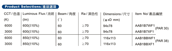 . 电能消耗(W):PAR 30-7(±10%)